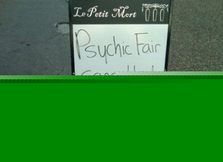 Atlanta (Georgia, USA) város egy pajzán nevű és kétes hátterű üzleti vállalkozásának bejárata előtt áll a pszí (paranormális) képességek teljes kudarcát jelző információs tábla: